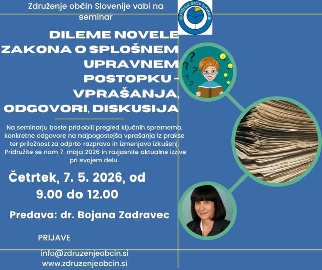 v praksi občin se pri izvajanju upravnih postopkov vse pogosteje odpirajo vprašanja in dileme, povezane z novelo Zakona o splošnem upravnem postopku (ZUP). Spremembe prinašajo številne novosti, ki vplivajo na vsakodnevno delo javnih uslužbencev, hkrati pa odpirajo tudi vrsto interpretativnih izzivov.