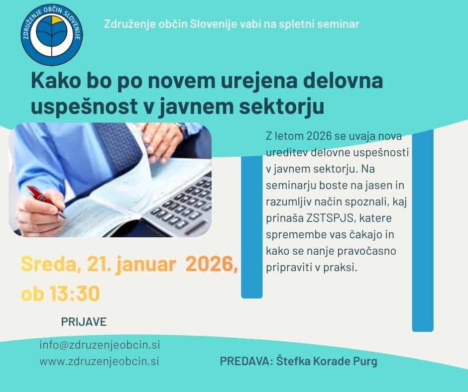 Seminar bo izveden v spletni obliki (ZOOM) in bo udeležencem omogočil jasno razumevanje sprememb, ki jih ZSTSPJS prinaša na področju delovne uspešnosti, ter pripravo na njihovo uporabo v praksi.