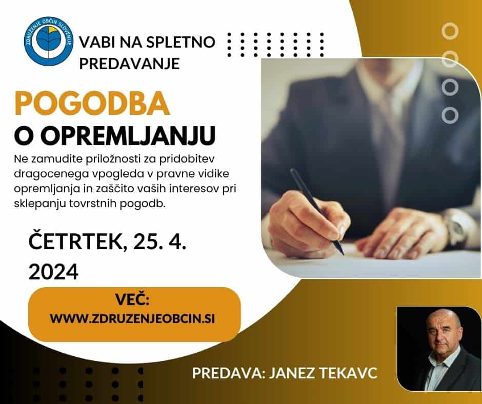 Vabimo vas na zanimivo predavanje na temo “Pogodba o opremljanju”, ki ga bo izvajal priznani odvetnik Janez Tekavc.