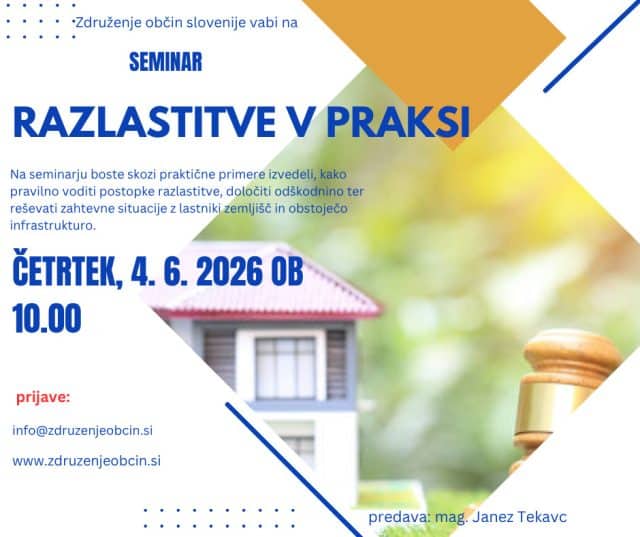Seminar bo vodil mag. Janez Tekavc, ki bo predstavil ključne dileme na področju razlastitve s poudarkom na praktičnih vprašanjih, s katerimi se srečujejo občine in drugi deležniki v praksi.
