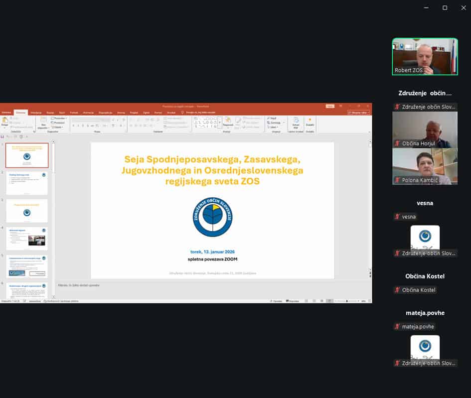 Ljubljana, 13. 1. 2026 – Danes, torej v torek, 13. 1. 2026, je potekala združena seja Posavskega, Zasavskega, Jugovzhodnega in Osrednjeslovenskega regijskega sveta Združenja občin Slovenije (v nadaljevanju: ZOS). Na seji, ki jo je vodil predsednik ZOS Robert Smrdelj, so zbrani županje in župani ter drugi predstavniki občin članic ZOS razpravljali predvsem o aktualnih problemih, ki pestijo občine.